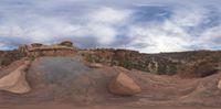 Utah's open landscape featuring a rocky surface with gravel and dirt areas. Natural beauty on a sunny day under a cloud-dotted sky. The USA's unique nature in full display.