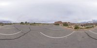 A landscape in Utah at dawn, with open spaces and clear skies. The road, surrounded by greenery, cuts through the grey sky. Shadows cast on the dirt and gravel surfaces, creating a gloomy yet serene atmosphere.