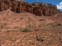 An off-road track in Capitol Reef, Utah, surrounded by vast open spaces. The paver road surface stands out against the sandy landscape. Clear skies with billowing clouds create the perfect day for a nature adventure.