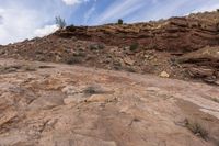 A rugged off-road track in Utah's desert landscape. Red rock formations and cliffs create a stunning backdrop against the clear blue sky. The rocky terrain offers a recreational playground for nature enthusiasts.