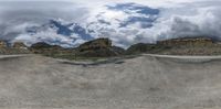 a panoramic picture shows the curve in the desert in this photo taken using a 360 camera