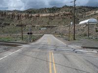 A straight road leading through the breathtaking landscape of Utah. Surrounded by mountains and nature, the asphalt road takes you on a scenic journey. Clouds dot the sky on a sunny day.