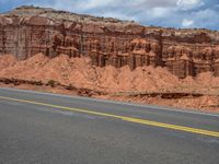 A scenic view of Highway 12 in Capitol Reef, Utah. The road winds through beautiful landscapes, with clouds dotting the clear blue sky. A perfect day to explore nature in the USA.