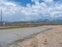 A scenic rural landscape in Utah, featuring a dirt road cutting through the mountains. The road's gravel surface contrasts with the natural surroundings and clear sky above. An idyllic day in the American West.