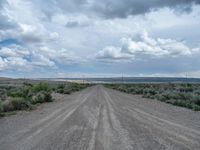 A rural landscape in Utah, USA, with a straight road leading off into the distance. Clouds fill the sky on a sunny day, while dirt, gravel, and sand streets intersect the main road. Nature's track through the terrain.