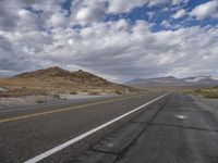 a empty road that is in the middle of a desert with mountain range behind it