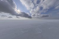 Dramatic landscape of a salt flat in Utah, USA, under a sunny sky. Concrete surface contrasts with the open space and mountain backdrop. The sun creates a dramatic desert scene.