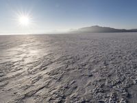 A serene winter sunrise over the rugged mountains of Utah. The calm waters of the Salt Lake City's salt lake reflect the clear sky and the stunning landscape. A perfect packshot of Utah's natural beauty.
