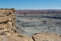 A scenic road in Utah, USA, winds through the red rock desert landscape. Majestic mountains and rugged terrain create a dramatic backdrop. The clear sky highlights the natural beauty of this off-road track.