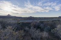 A serene sunrise in Utah, USA. The road stretches through the desert, surrounded by red rock mountains and grassy highlands. The clear sky and rolling hills create a picturesque wilderness landscape.