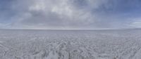 a large wide expanse of ice with a single person in the distance in the distance