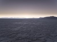 a lone lone horse on a desert plain near mountains at dusk in a barren area