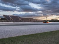 Valencia's stunning architecture stands against a clear sky, while a road lines the edge of the ocean. The city's dramatic urban design is highlighted by a race track that cuts through the mountain landscape. A perfect evening in Spain.