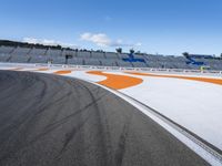 A clear day in Valencia, Spain, showcases the city's famous race track. The asphalt road is adorned with white and orange markings, signaling the vibrant motorsport culture of Europe.