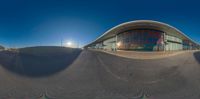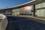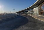 The corporate headquarters in Vaughan, Ontario, showcases modern architecture with its glass windows and straight road leading to the building. The clear sky and sunshine reflect off the glass, adding to the urban landscape.