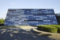 A clear sky over the suburbs of Herdon, Virginia. The curve of the asphalt road leads to the corporate headquarters building, reflecting the open space and residential areas. A picturesque day in the USA.