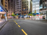 This image captures the essence of urban life in Wellington, New Zealand. The night scene shows an empty street lined with shops and office buildings, illuminated by artificial lights. The absence of traffic and pedestrians gives a sense of calmness. The storefronts and business establishments contribute to the vibrant atmosphere of the city. With the dark sky above and the street lights shining, this photo represents the unique urban design of Wellington. It showcases the blend of business and city life that defines this bustling metropolis.