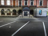 the entrance to an upscale, upscale building is visible in the foreground with no cars