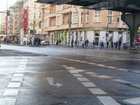 A wet day in Berlin, Germany. The city's architecture and urban design shine through the wet asphalt roads. Bridges and underpasses connect neighborhoods, while vehicles navigate the streets. A glimpse into urban Europe.