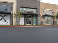 This image captures a large commercial store front in a suburban area. The building is situated on a road with no parking allowed, as indicated by the red curb. The urban design features a mix of vegetation, including trees lining the street. In the background, clouds can be seen in the clear sky. The presence of the store signifies a shopping destination in a residential neighborhood. This photo reflects the blend of residential and commercial elements in a suburban setting.