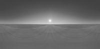 a sun over a beach filled with tracks of dirt road construction lines to form the path