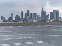 This stunning stock photo features the skyline of a metropolitan city during a winter dawn. The high-rise skyscrapers pierce through the clouds, creating a captivating cityscape. The concrete structures and asphalt surfaces are layered with a light dusting of snow, adding a touch of beauty to the urban landscape. The freezing temperatures create a serene and chilly atmosphere, perfect for capturing the essence of a metropolis in winter. The image showcases the downtown area with its bustling streets and parking lots. This cityscape stock photo is ideal for various creative projects and can complement any design that requires an urban aesthetic.