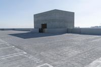 A winter day in the city. Clear skies shine down on the concrete and asphalt surfaces. Architectural structures stand tall, while a parking lot and parking garage provide ample space. The urban landscape is a packshot of modern design.