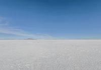 A stunning view of a snow-covered field in Salt Lake City, Utah. The open space is empty and full of snow, with a clear blue sky in the distance. The serene desert landscape is a perfect example of the beauty of nature. The image captures the tranquility of the day, with contrails streaking across the sky. Ideal for showcasing the natural wonders of Salt Lake City, Utah.