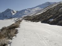This is a breathtaking image of a person skiing down a snow-covered slope in the mountains. The landscape showcases the majestic mountain range and the wilderness surrounding it. The clear sky and bright sunshine create a stunning contrast against the white snow. As the skier navigates the mountain pass, the freezing temperatures and the steep cliffs add to the thrilling adventure. This photo captures the essence of a beautiful winter day in the Alps, where the Piste offers endless opportunities for outdoor enthusiasts.