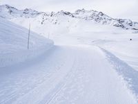 This is a breathtaking image of a snow-covered mountain landscape in the Alps, France. The clear sky provides a stunning backdrop for the majestic mountain range. The terrain is covered in pristine white snow, making it a popular tourist attraction for winter sports enthusiasts. The image captures the beauty of the glacial landscape, with its ice caps and glaciers visible in the distance. The ski tracks on the slope of the mountain indicate the popularity of this area for ski and recreation activities. This image represents the perfect winter getaway in Europe.