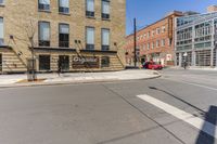 A woman is riding a bicycle by a building and a street sign for a liquor store in Toronto, Ontario, Canada. The modern architecture and brick wall of the building add to the urban cityscape. The road surface and crosswalk display the bustling city life. The image captures the essence of urban design and the vibrant energy of the city.