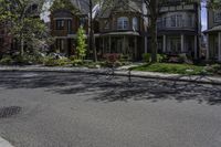 Classic architecture lines the streets of Toronto, Ontario. Rows of houses are surrounded by lush vegetation and towering trees, creating a picturesque residential neighborhood. Clear skies highlight the beauty of this Canadian city.