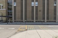This is an image of a modern building in the vibrant city of Toronto, Canada. The yellow fire hydrant on the sidewalk adds a pop of color to the urban landscape. The architecture and design of the building reflect the modern and innovative atmosphere of the city. The empty sidewalk and road surface give a sense of calm in the bustling urban environment. This photo captures the essence of city life in Toronto, showcasing the dynamic urban design and infrastructure that defines the city.