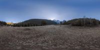 A serene scene in Yunnan, China. Two horses graze in a field of dry grass, surrounded by snow-covered trees and majestic mountains. The tranquil night sky adds to the enchantment of this elevated old village.