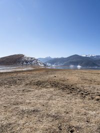 This is a beautiful landscape photo taken in Yunnan, China. The image showcases the natural environment of the region with its mountain ranges, highlands, and plateaus. The clear sky and snow-covered mountains create a stunning contrast against the green grass and fields below. In the distance, a lake can be seen, adding to the scenic beauty of the area. This photo captures the serene and pristine wilderness of Yunnan, making it a perfect representation of the region's natural beauty.