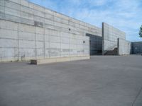 A modern architecture wall in Zaragoza, Spain. This urban design features open spaces and a plaza, reflecting the vibrant city life. The clear sky creates a perfect contrast to the concrete surface.