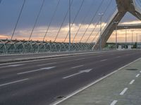 A modern architecture bridge in Zaragoza, Spain. The urban design blends seamlessly with the city life. Clouds in the sky enhance the urban atmosphere. A perfect day in Europe.