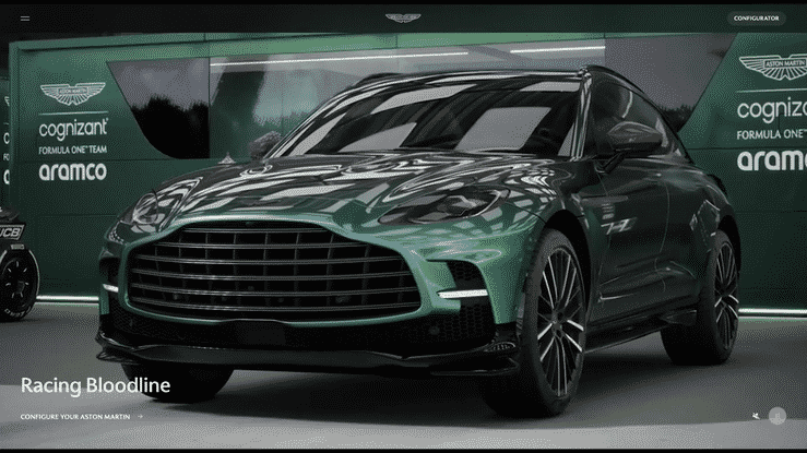 To celebrate those racing roots, Aston Martin and MHP partnered with CGI.Backgrounds to create an online configurator environment that allows current and potential owners to design their own Aston Martin, and instantly see it parked alongside the AMR23 in the team's garage at Silverstone.