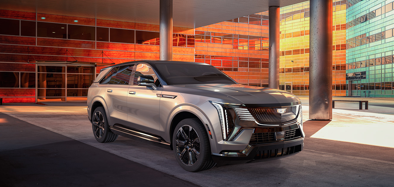 In the renders, the futuristic design of this building pairs perfectly with the Escalade, while the warmth of the building's tones provides a powerful pop of color that makes the render stand out.