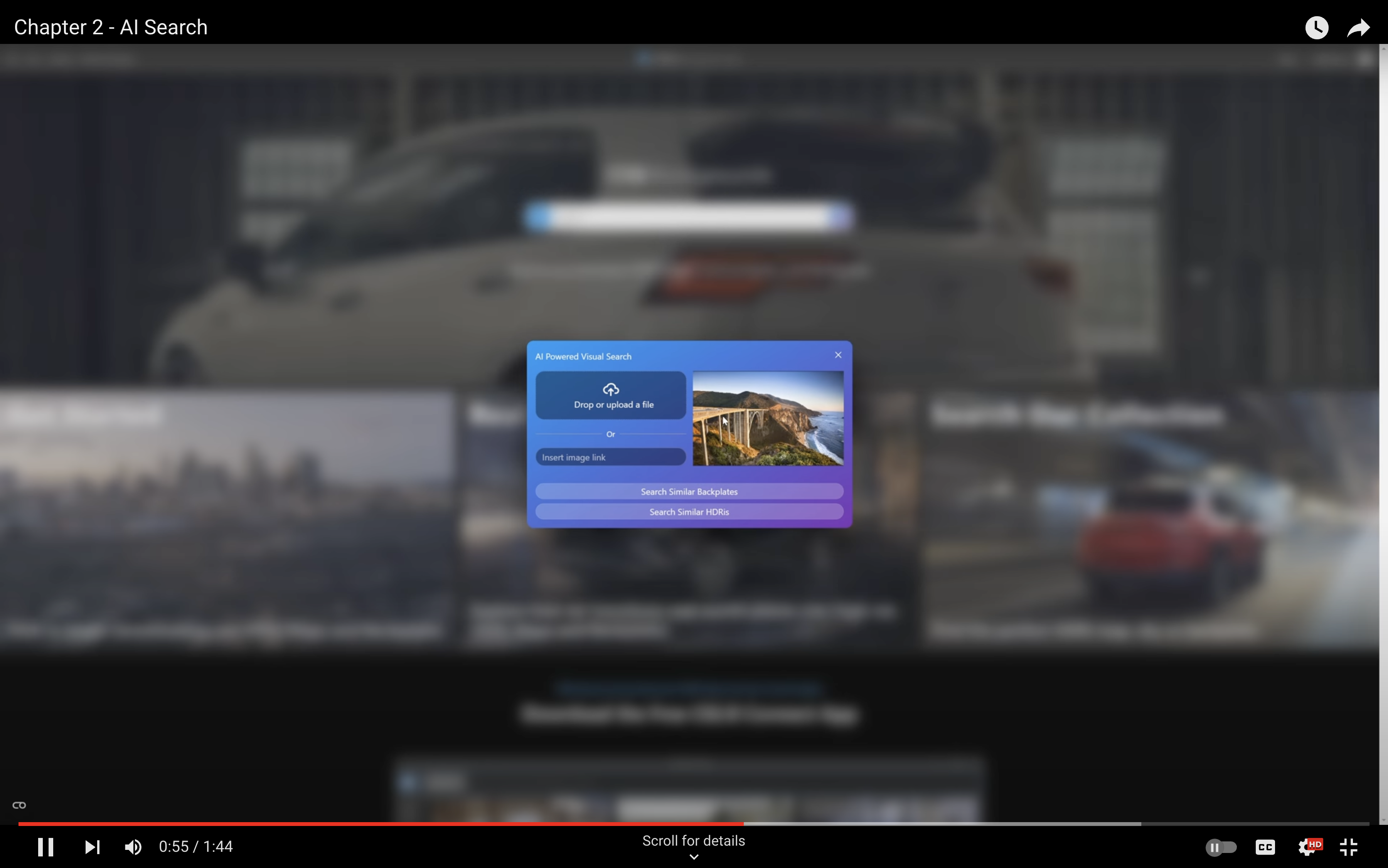 2. Explore the AI Visual Search Tool : Enhance your search by using the AI visual search. Drag and drop an image or insert an image link to find similar backplates or HDRIs. You can even upload an image from your device and find similar, licensable materials within the CGI.Backgrounds collection.