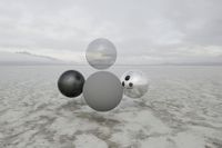 This 3D scene captures the vast, open expanse of Utah's iconic salt flats. The landscape is characterized by its flat, white surface stretching to the horizon, creating a dramatic contrast against the distant, fog-enshrouded mountains. The overcast sky adds a moody, atmospheric quality, enhancing the scene's rugged, off-road appeal. The cloud cover diffuses the daylight, providing soft, even lighting that accentuates the textural details of the dry, cracked salt surface. This scene is perfect for showcasing vehicles in a rugged, remote environment. Its clean, minimalist backdrop highlights product renders, making it ideal for dramatic automotive and outdoor gear visualizations.