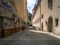 The streets of Berlin, Germany are alive with classic architecture, urban design, and cobble stone roads. Facades, houseplants and trees line the alleyways and thoroughfares, framed by the tints and shades of dawn's light. Motor vehicles, bicycles, and even a gas fixture in the foreground show the life that pulses in this vibrant European city.
