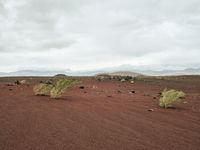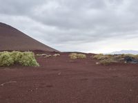 A dramatic, dry landscape with a road surface, soil, gravel, sand, and vegetation in the California desert of the USA, against a backdrop of a grey sky, mountain range, and ocean horizon.