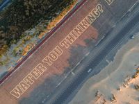 An aerial view of the Netherlands at break of day reveals the Aeolian landforms in the beige and brown hues of the desert, beach, grass, and asphalt that make up this unique biome. The horizon is outlined by the azure lake and ocean, and the sunlight paints the trees and metal infrastructure in tints and shades of the rising sun.