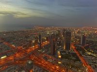 Aerial View of Dubai's Dramatic Cityscape at Dawn