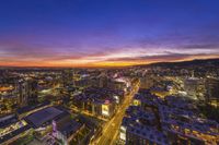 Aerial View of Los Angeles City Skyline at Dawn