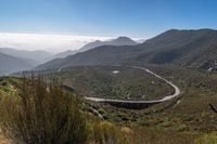 An elevated view of a lush green landscape with trees and grass, under a sunny sky