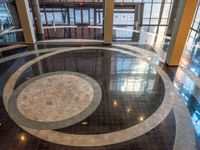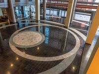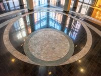 An elevated perspective of the urban landscape in Las Vegas, USA, showcasing its modern architecture and city life. The photo captures the open spaces, high positions, and urban design of the city, with a top-down view of a bustling shopping mall.