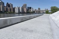 An aerial view of New York City, USA, with a clear sky and skyline featuring skyscrapers, roads, residential areas, driveways, memorials, and other infrastructure.