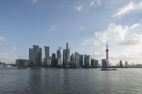 An aerial view of the city of Shanghai showcasing its modern architecture and skyscrapers against a backdrop of clouds. Shanghai is a bustling metropolis in China, known for its elevated skyline and stunning cityscape. This image provides an overview of the city's metropolitan area, highlighting its urban development and bustling human settlement. Located in Asia, Shanghai is a major municipality and a symbol of modernity and progress.